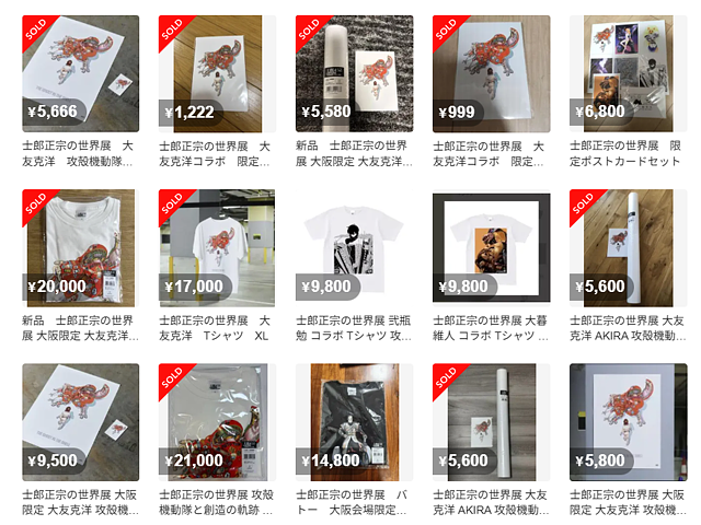 大阪会場で購入された大友コラボグッズは、すでに高額出品が相次いでいる。