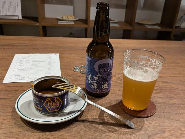 まずはビール、そしてサバのトマト煮缶詰(賞味期日迫り半額品)をフォークでつつき、地元の話をいろいろ聞く。問題のチャコリワインは微発泡だがクセはなく、純米酒のようにグビグビいける。ほかに美味かったのは、地元醸造所ミロクビールの「UDON IPA 旋風」。なんと、うどんを原料にしたクラフトビールという。さすが丸亀、今、うどんは立ち飲み屋で飲むスタイルになった。