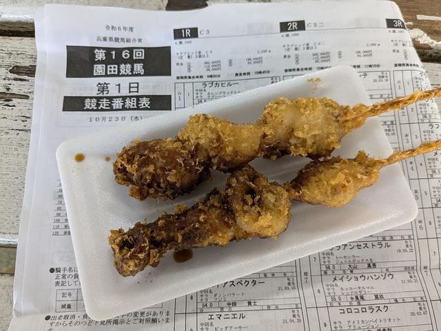 さらにサワー、ハイボール400円と、場内は立ち飲み屋もビックリの激安食堂街である。加えて当場にはナイター開催を応援するご当地アイドルグループ『SKNフラッシュ8』がいて、時々スタンドでオッサン客に紛れて予想動画を撮影してたりで楽しい! そして当たる!! このまま最終レースまで的中したらどうなる(死ぬか?)と怖いぐらいだったが、第10、第11Rとハズして人生そんなに甘くないと思い知り、本日はここまでと競馬場をあとにした。