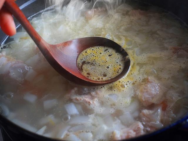 肉や魚から出る灰汁は、主にタンパク質や脂質の変性したもので、白い泡状になります。一方、野菜や山菜の灰汁は、主にタンニン、シュウ酸などの成分です。