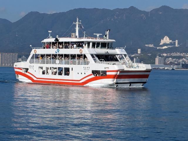 羽田空港を9時台に発って岩国着が11時前。バスがすぐ出てJR岩国駅前の激安ビジネスホテルに荷物を預けても11時30分。山陽本線レッドウイング号(といっても各駅停車)の広島カープラッピングに乗って県境を越え、宮島口駅まで約20分。