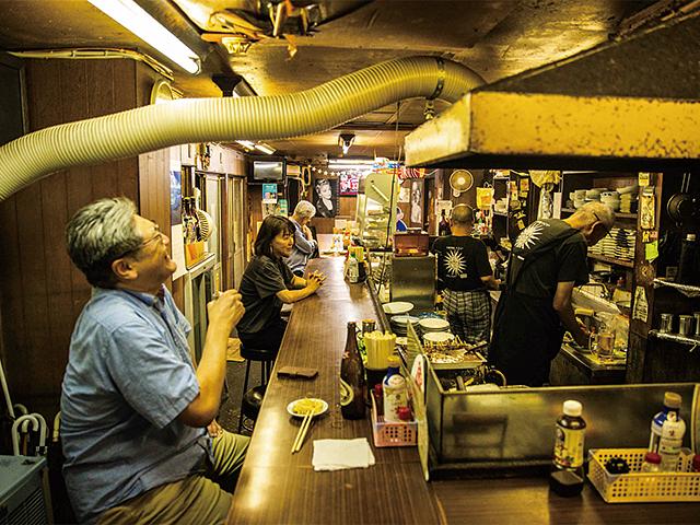 小さな間口だが中は意外と広い。テーブル席ではサラリーマンが赤ら顔で話に花を咲かせ、入口に近いカウンター席は一人客の指定席。酒の入った客はみな陽気で、テンポのいい掛け合いは大阪ならでは。